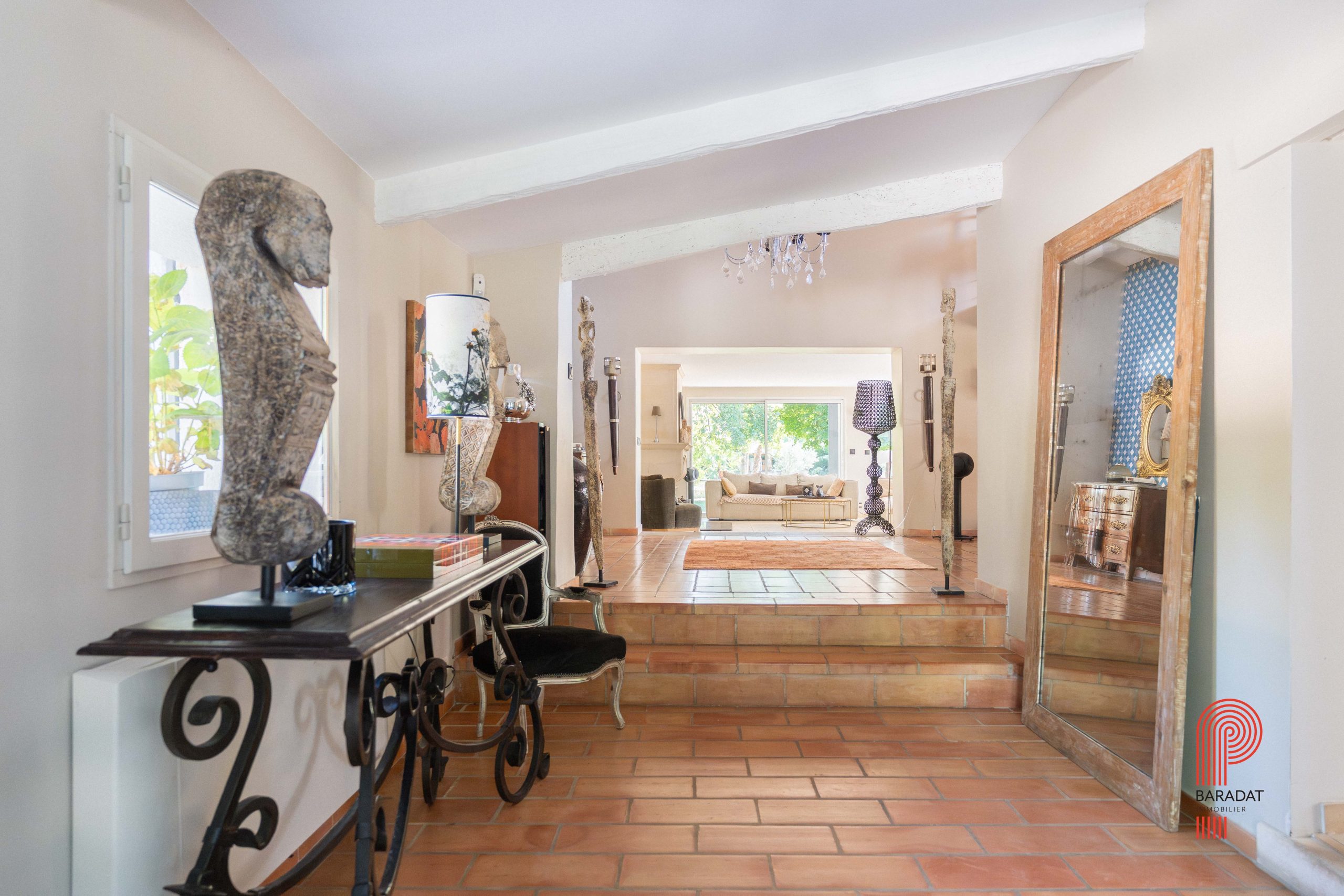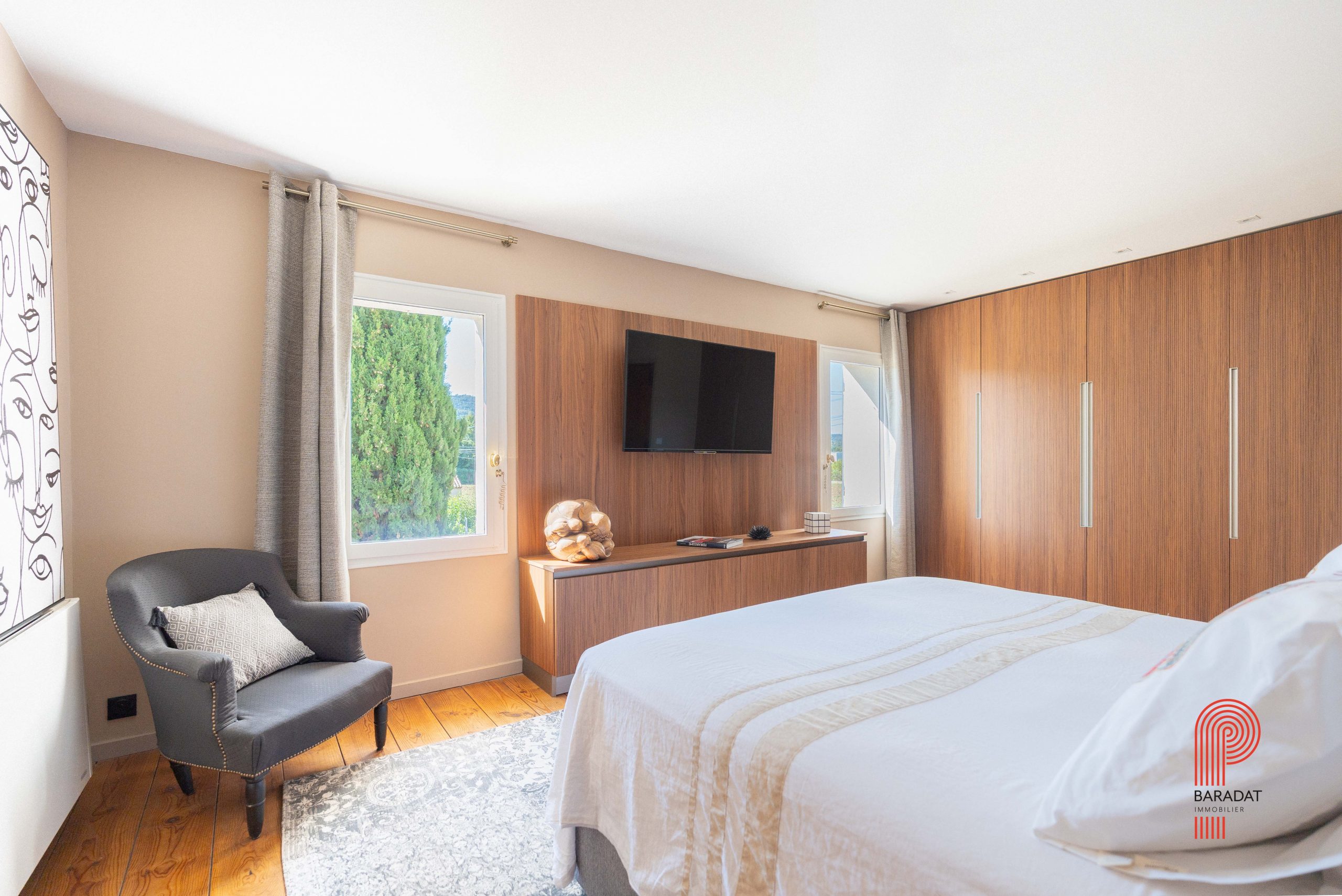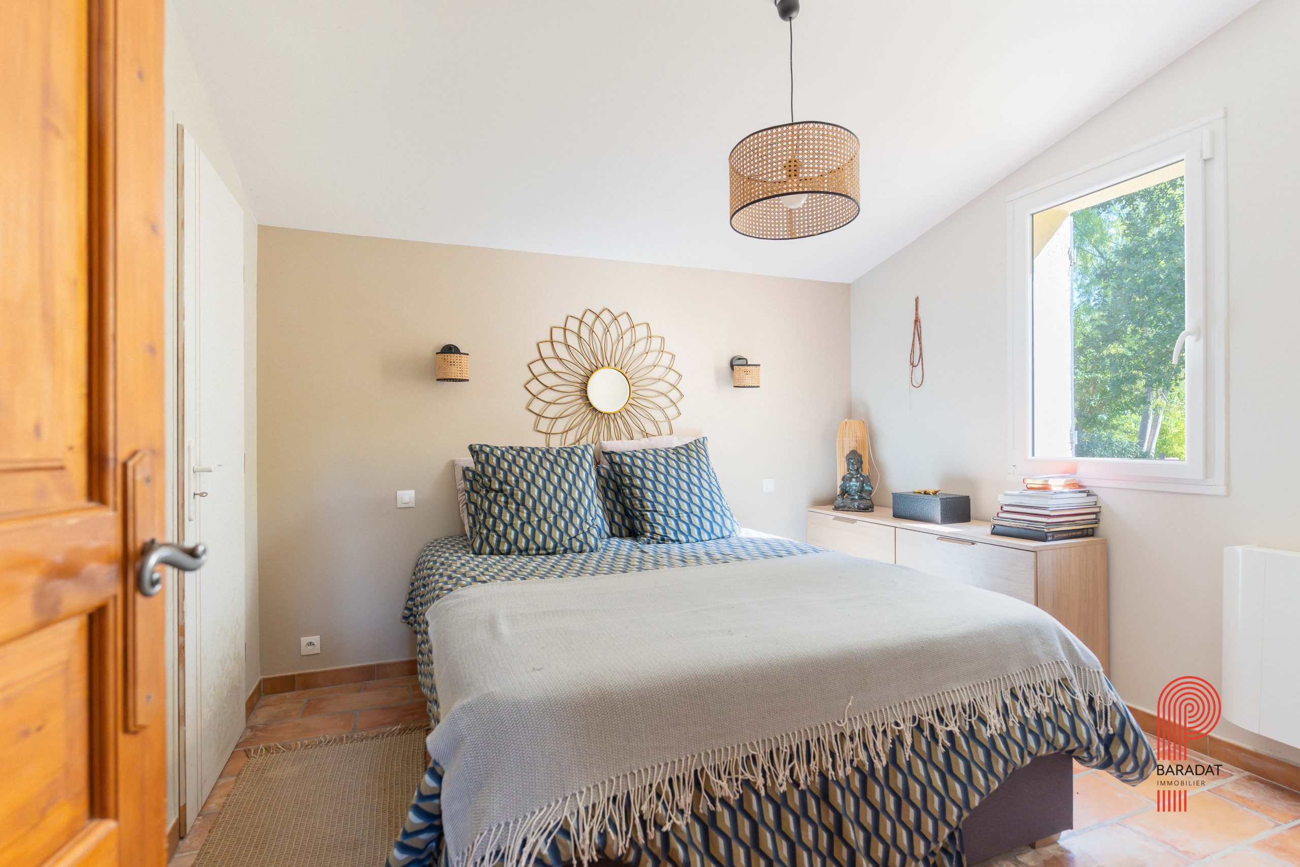 La maison se compose de quatre chambres, dont une en RDC, et propose de beaux volumes de vie. Pensée pour la détente et la convivialité, elle dispose notamment d’une piscine chauffée avec une cabane balinaise, d’un salon d’extérieur et d’un espace repas ombragé. Le tout avec une vue dégagée sur les collines environnantes.