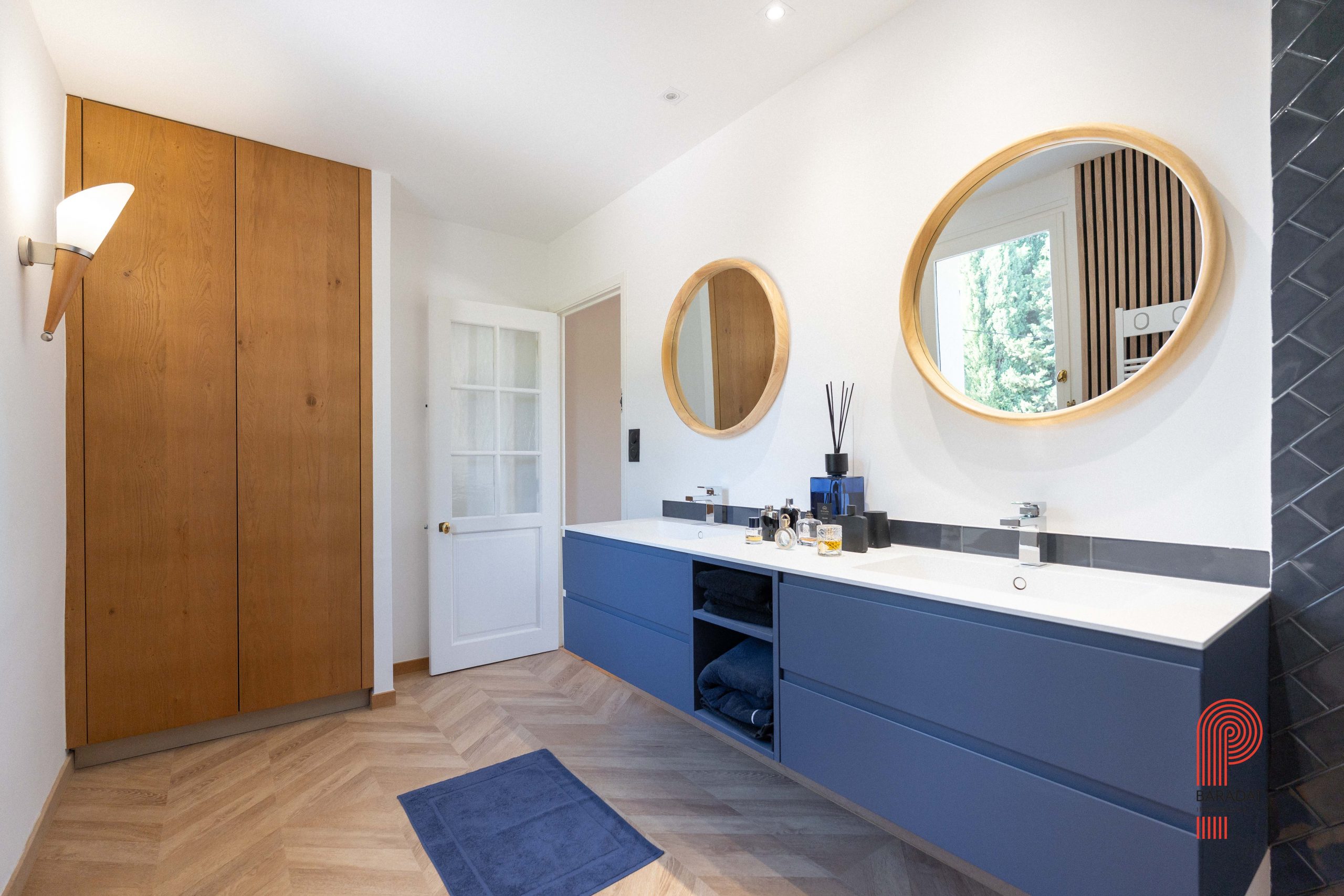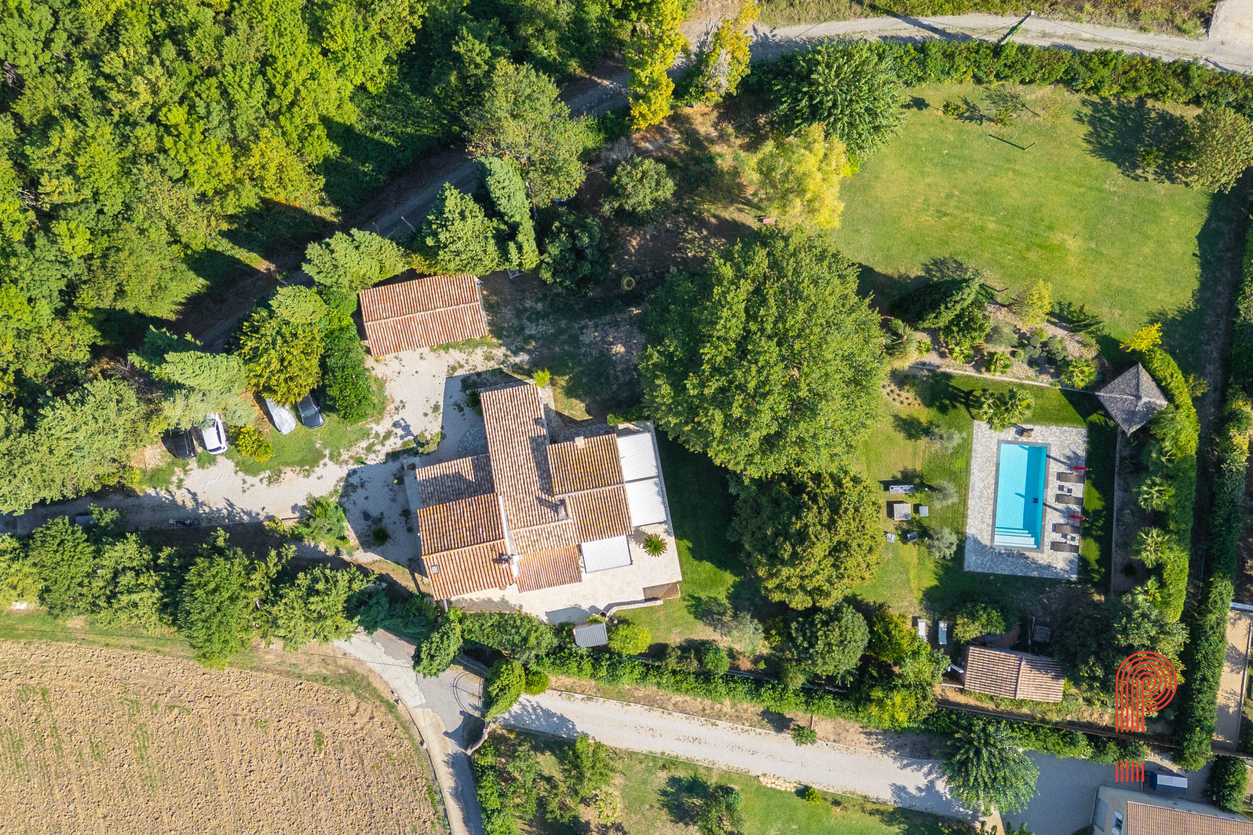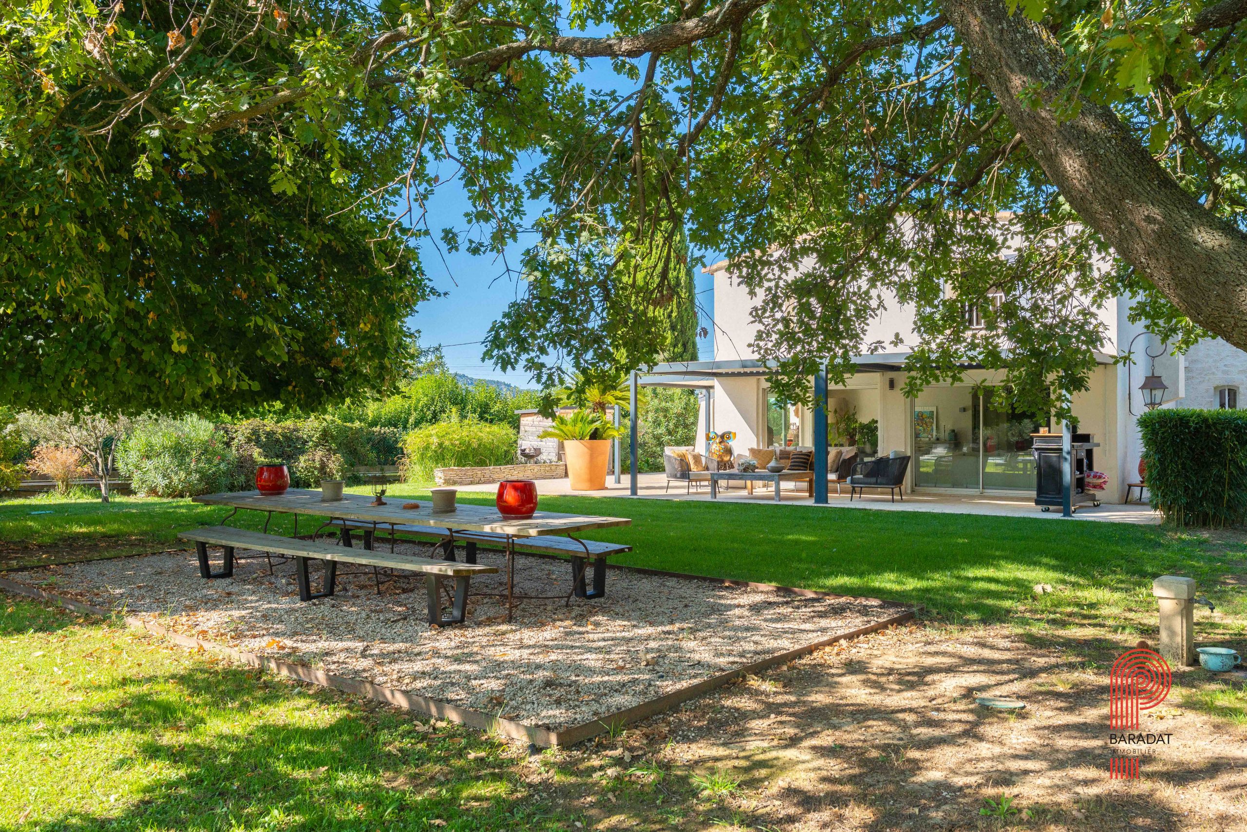 La maison se compose de quatre chambres, dont une en RDC, et propose de beaux volumes de vie. Pensée pour la détente et la convivialité, elle dispose notamment d’une piscine chauffée avec une cabane balinaise, d’un salon d’extérieur et d’un espace repas ombragé. Le tout avec une vue dégagée sur les collines environnantes.