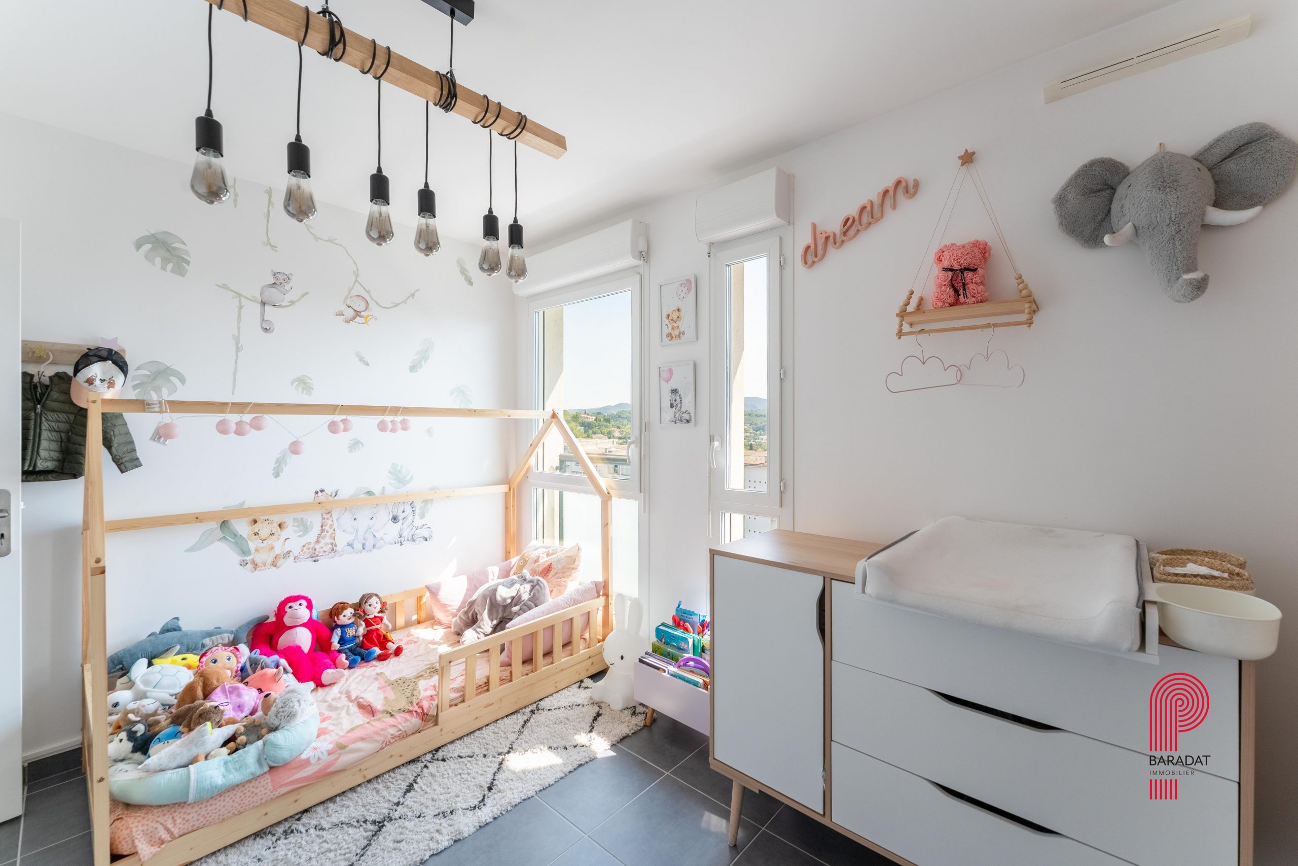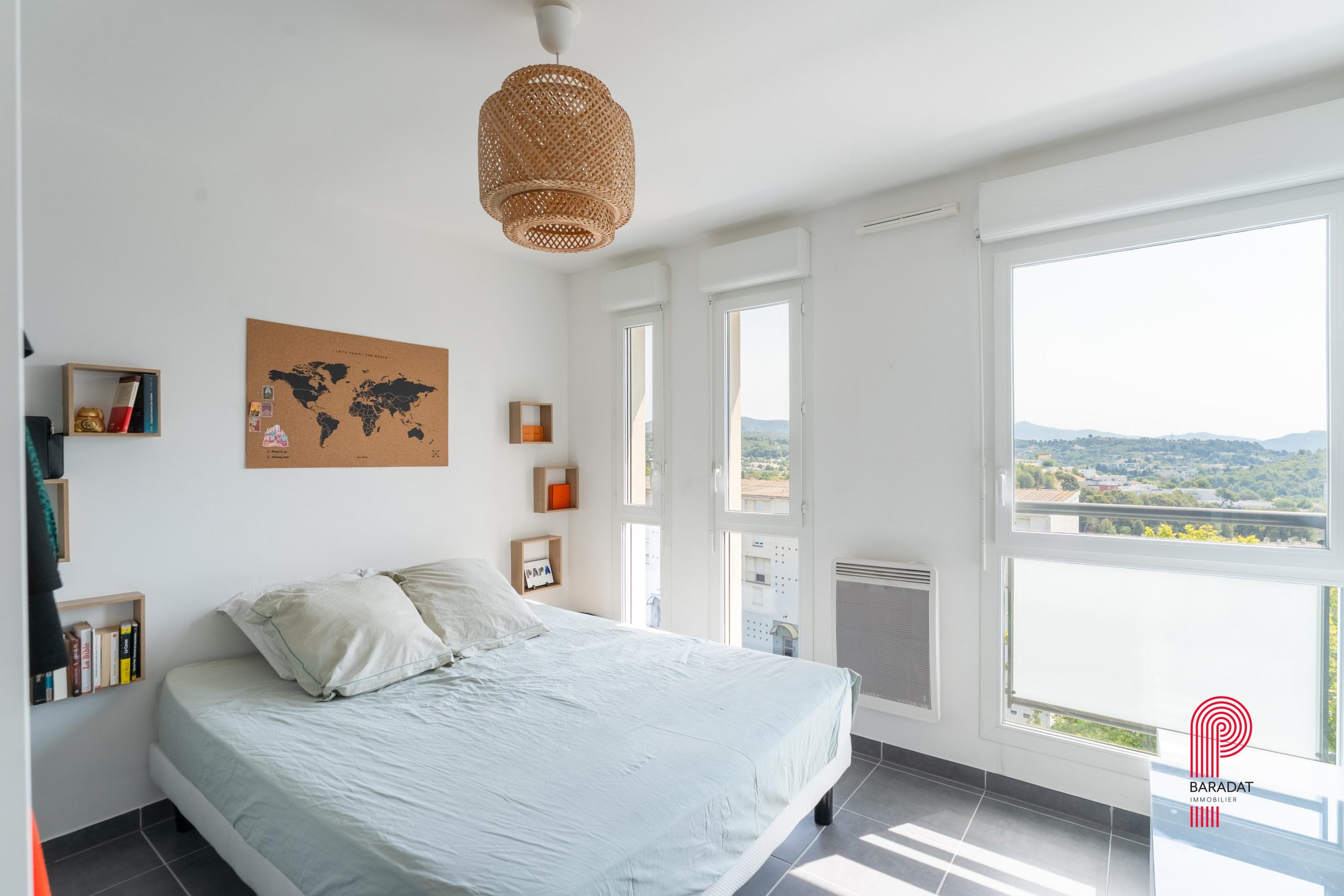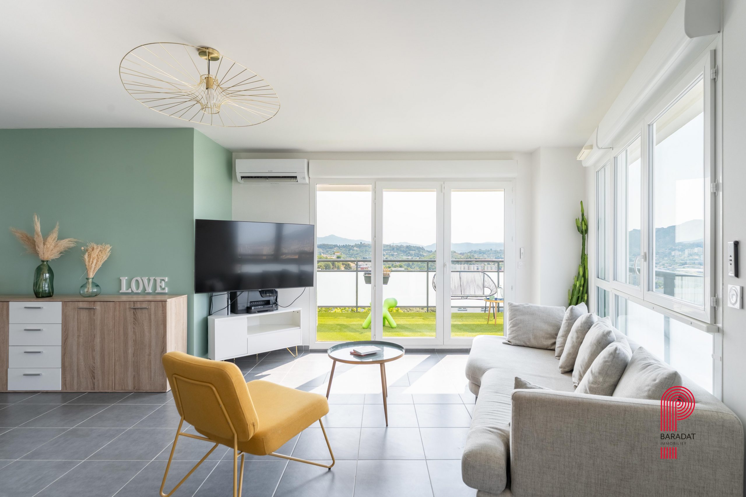 Ce bien se trouve au 6e et dernier étage, seul sur le palier, accessible via un code dont seuls les propriétaires disposent. Il se compose de deux chambres avec vue sur les collines, d’une salle d’eau spacieuse, ainsi que d’un bel espace de vie de 37 m² regroupant un séjour et une cuisine entièrement équipée.