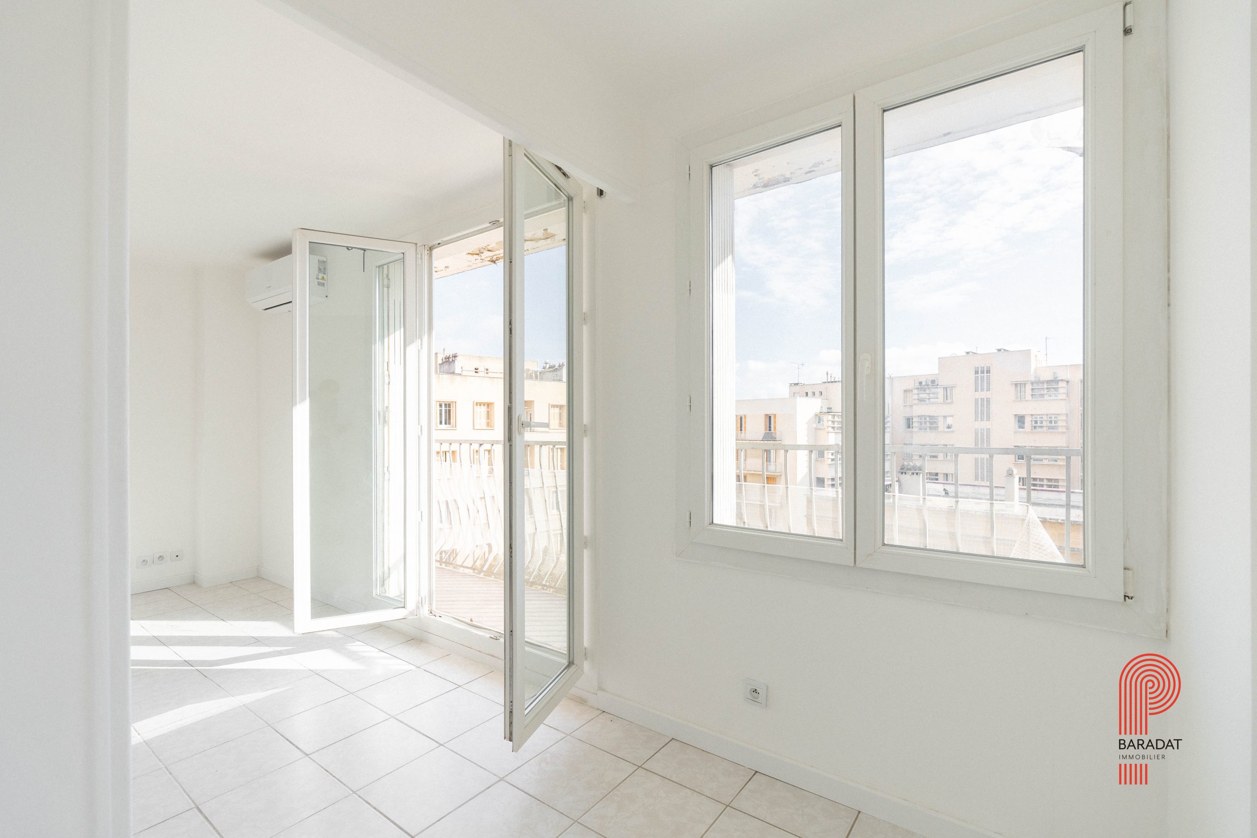 Exclusivité – Situé au cœur du Panier, à deux pas du vieux port, ce studio de 35m2 en étage élevé avec balcon orienté plein sud est entièrement rénové.