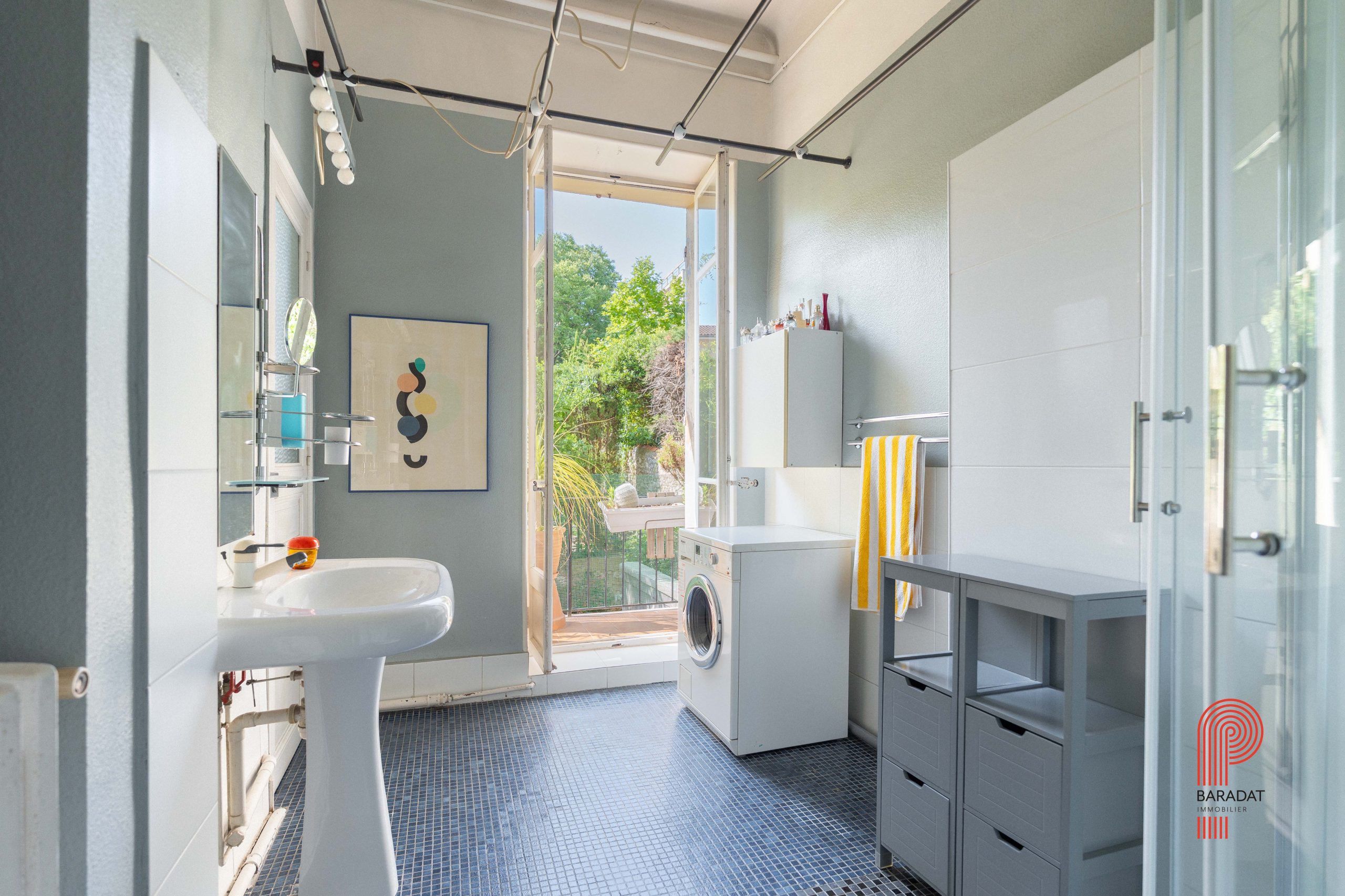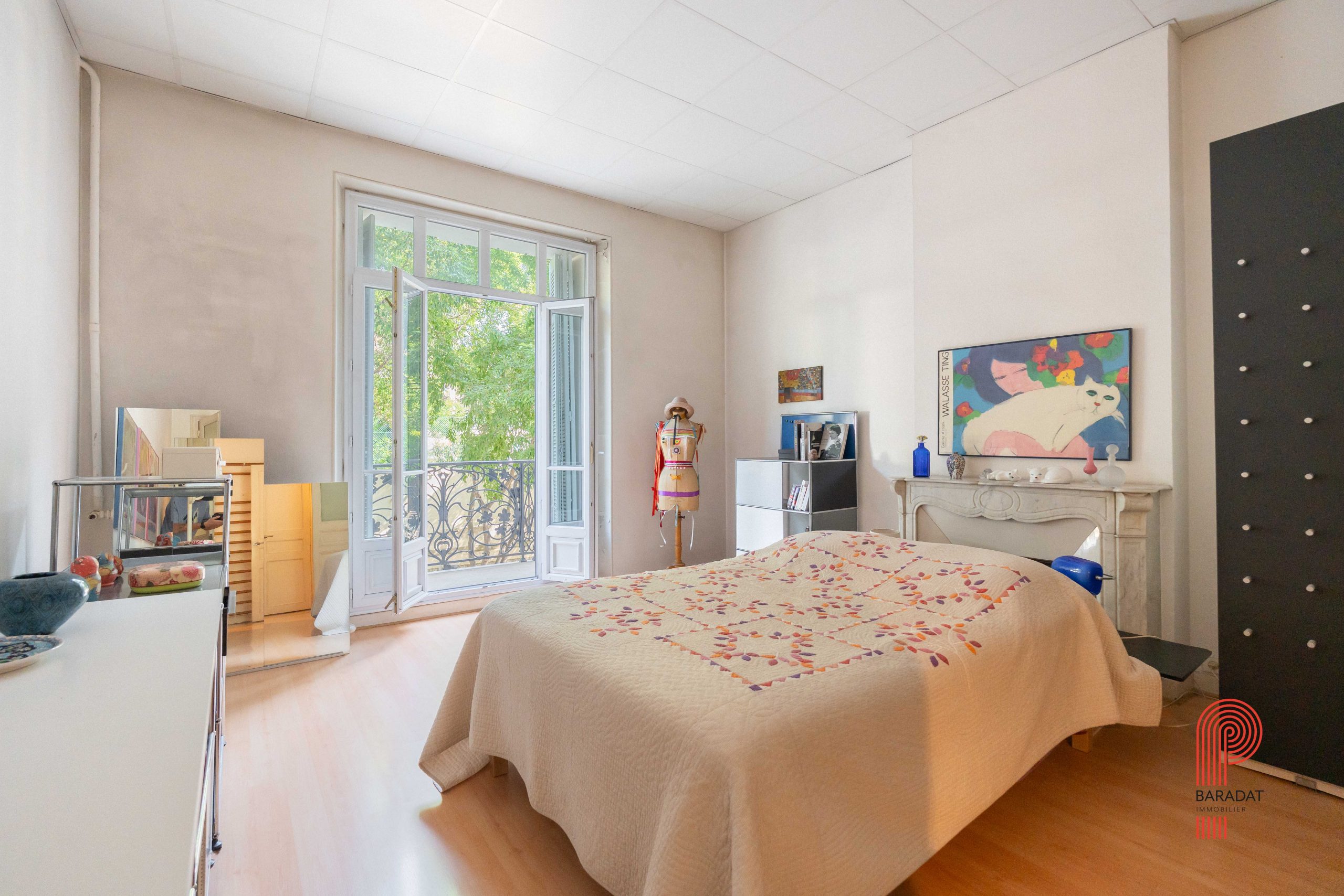 Cet appartement traversant de 130 m² dispose de 3 chambres et de plusieurs balcons. Il occupe l’intégralité du premier étage d’un immeuble bourgeois idéalement situé, à proximité de la jonction entre les boulevards Périer et Gaston Crémieux.