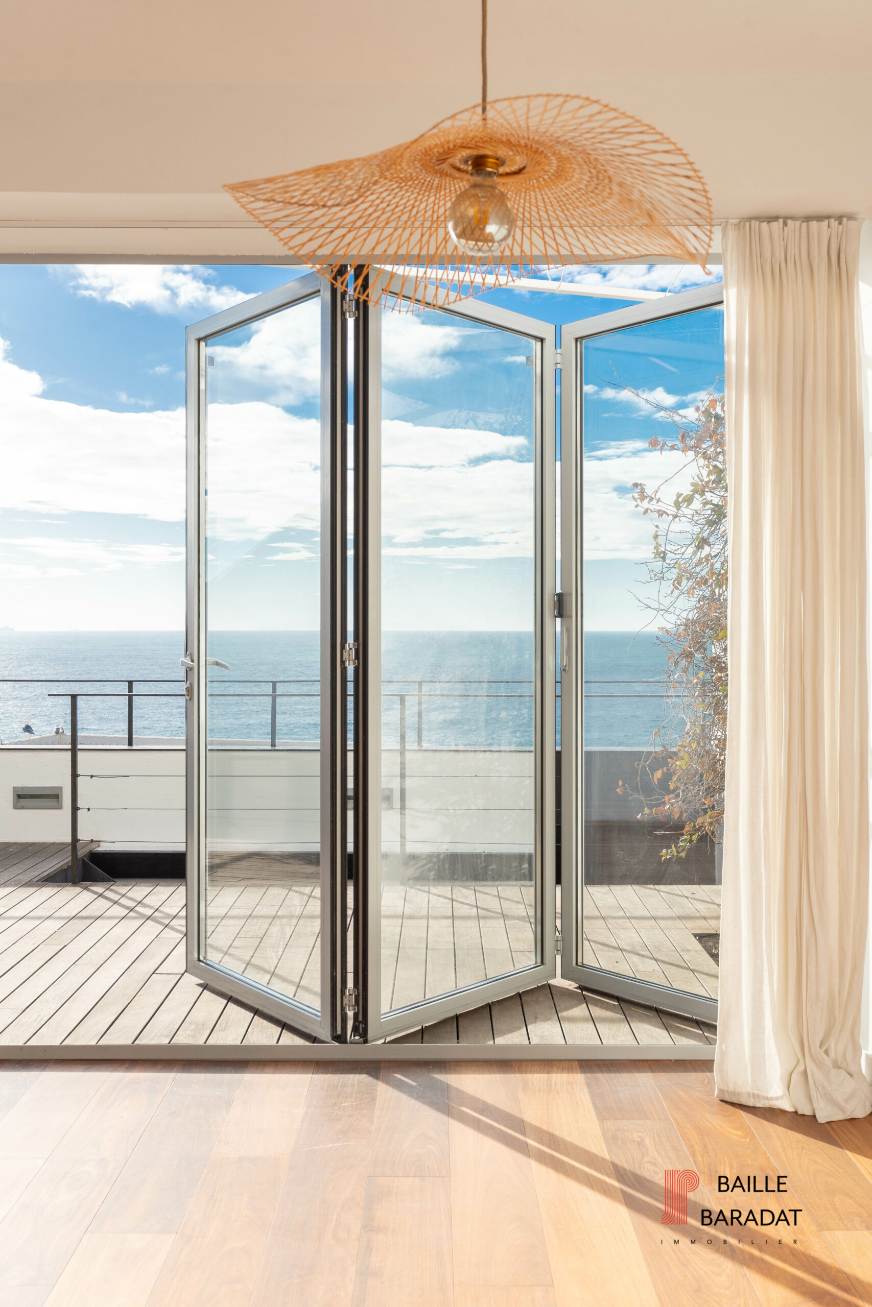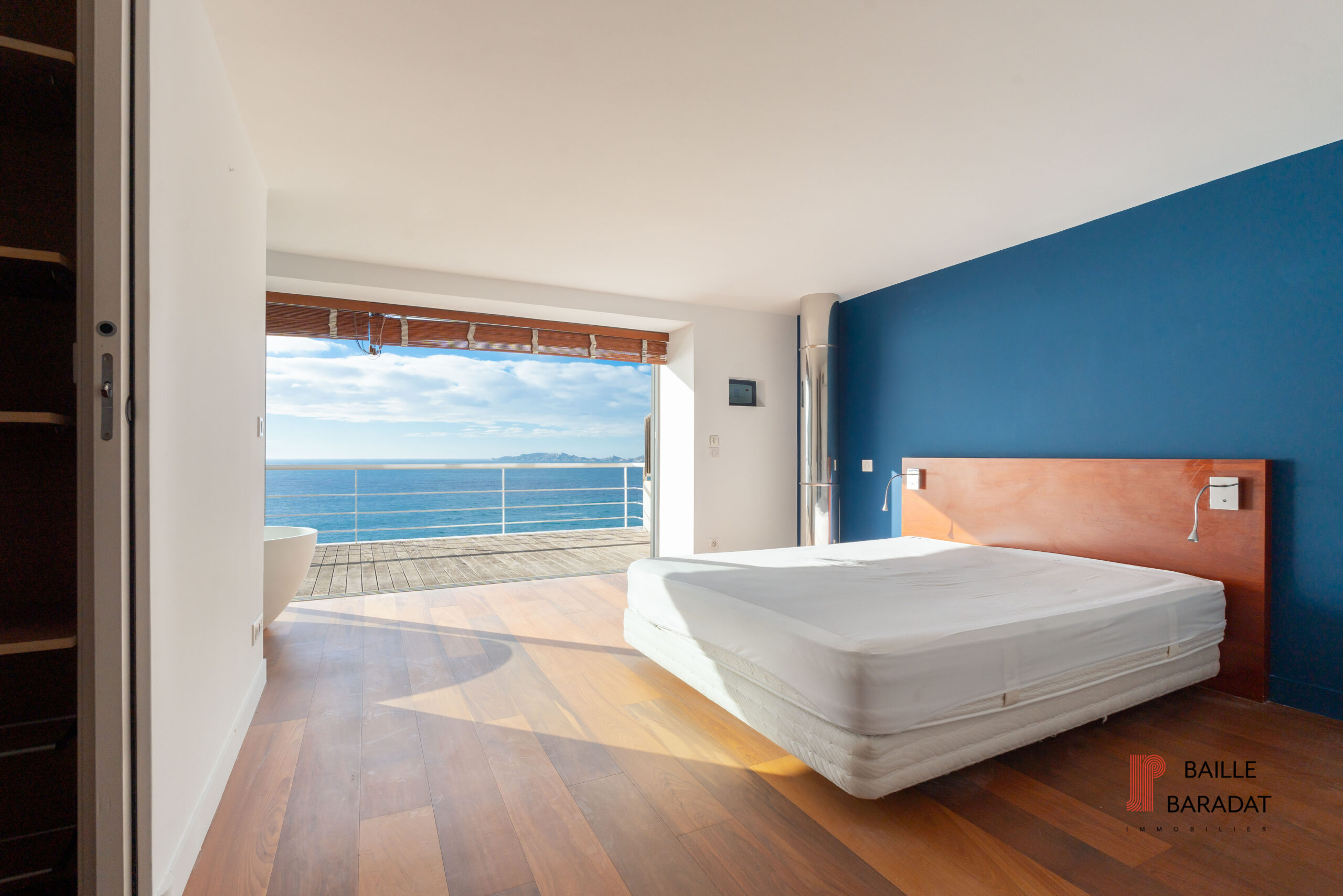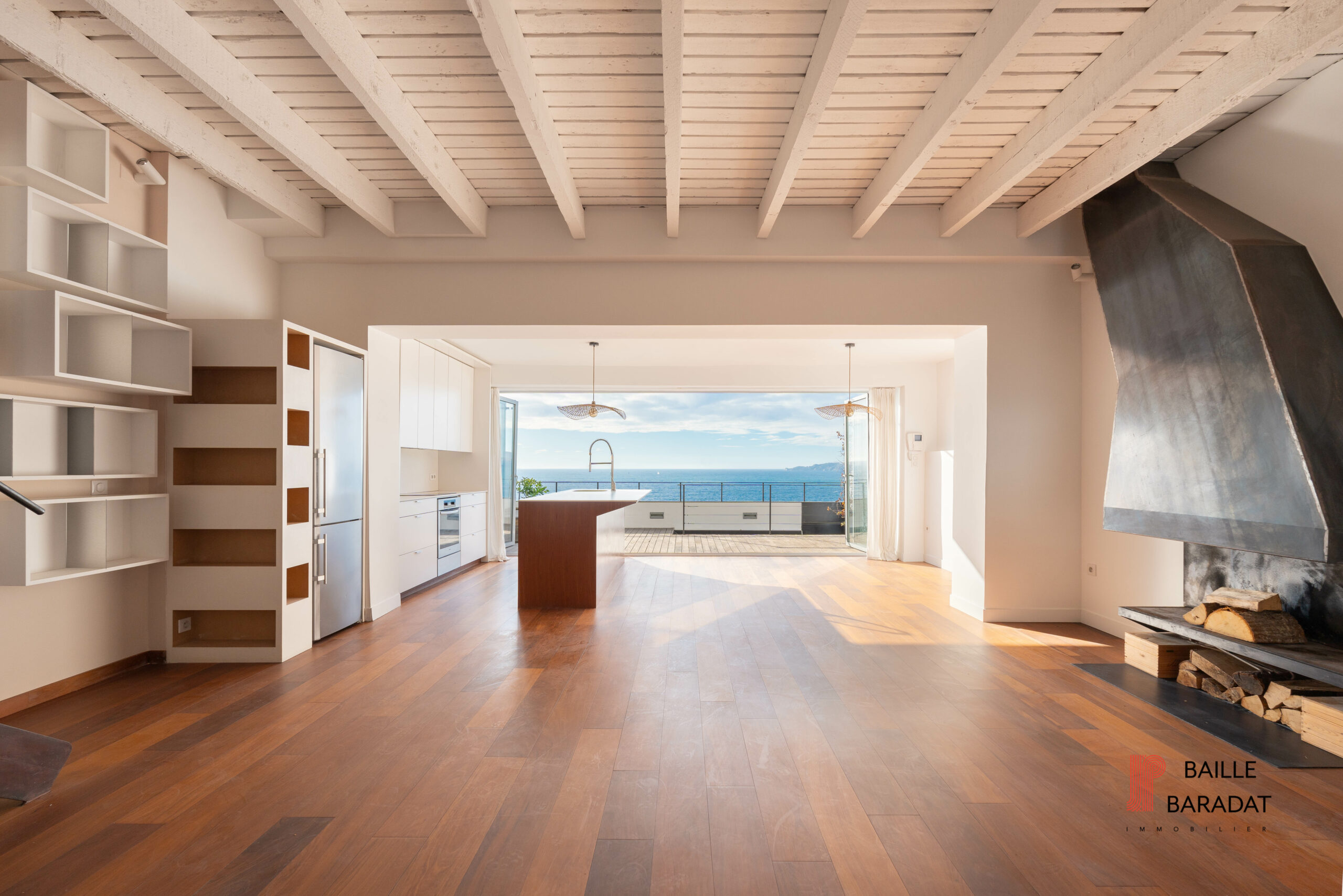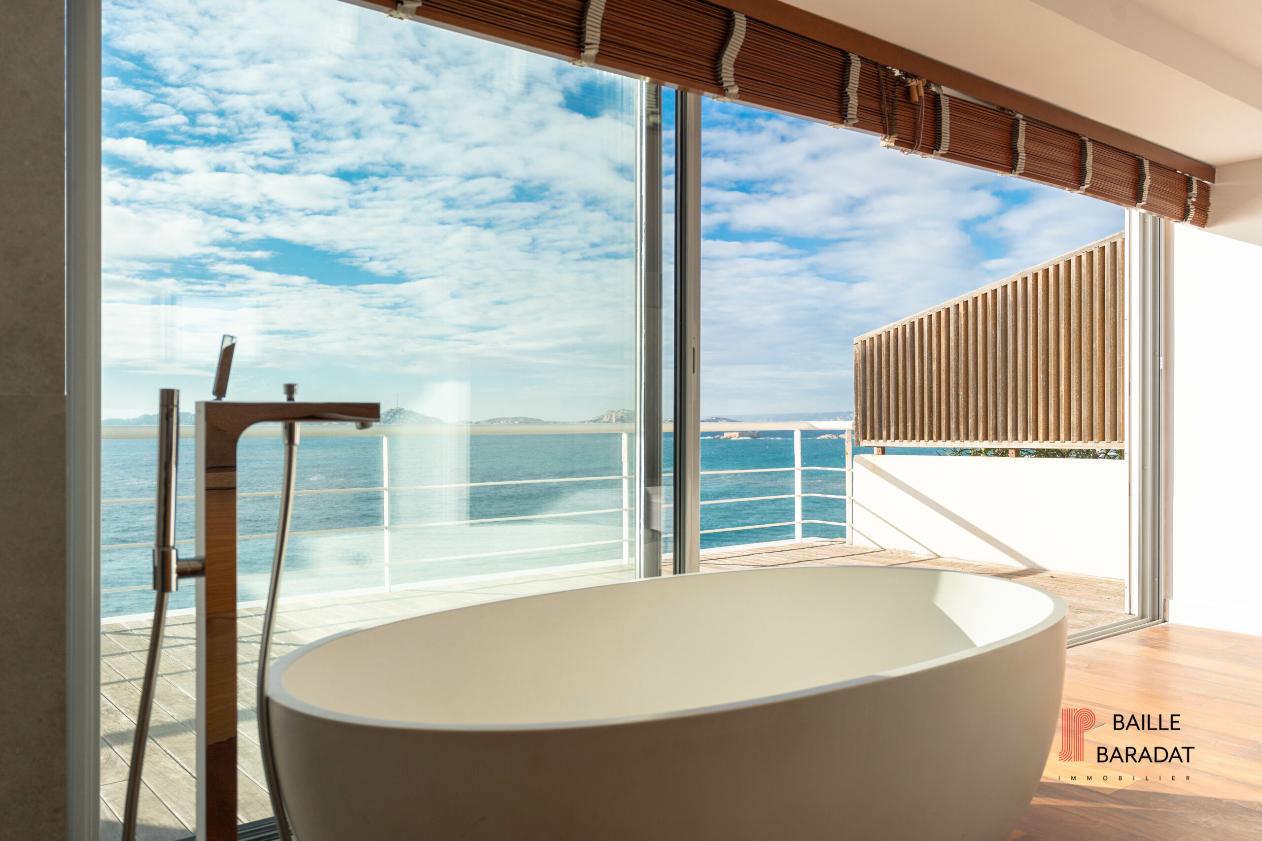Exclusivité – Idéalement située dans le quartier du Roucas-Blanc, cette maison de 133 m² bénéficie d’une vue exceptionnelle sur la mer. Accessible à pied par un escalier, elle surplombe la corniche et la plage du Prophète. Toutes les pièces sont orientées vers la mer, avec pour toile de fond l’île Maire, l’île De Planier, Le Frioul et le Château d’If, créant une atmosphère unique, comme posé sur l’eau. Au premier niveau, se trouve une spacieuse pièce à vivre de 53 m² agrémentée d’une cuisine moderne et d’une cheminée au design contemporain. Les larges baies vitrées en accordéon s’effacent complétement prolongeant l’espace de vie vers une terrasse ensoleillée et sans vis-à-vis de 20 m². Le deuxième niveau abrite une suite parentale complète avec dressing, salle de bain et douche, ainsi qu’une deuxième terrasse de 18 m². Au dernier étage, une salle d’eau et une grande chambre de 33 m² offrent une flexibilité d’aménagement, pouvant être facilement divisée par une cloison pour créer une troisième chambre ou un bureau. En parfait état, cette propriété ne nécessite aucuns travaux. Les nombreux rangements, matériaux et équipements de qualité assurent un confort optimal. Une cave de 12 m² complète la description et un box motorisé est disponible en location. Taxe foncière : 2300 €. Mandat exclusif numéro 106. Honoraires à la charge du vendeur. DPE : C/B. Non-détention de fonds. Contact : Mathieu PONCHIN 0624050026. www.géorisques.gouv.fr.