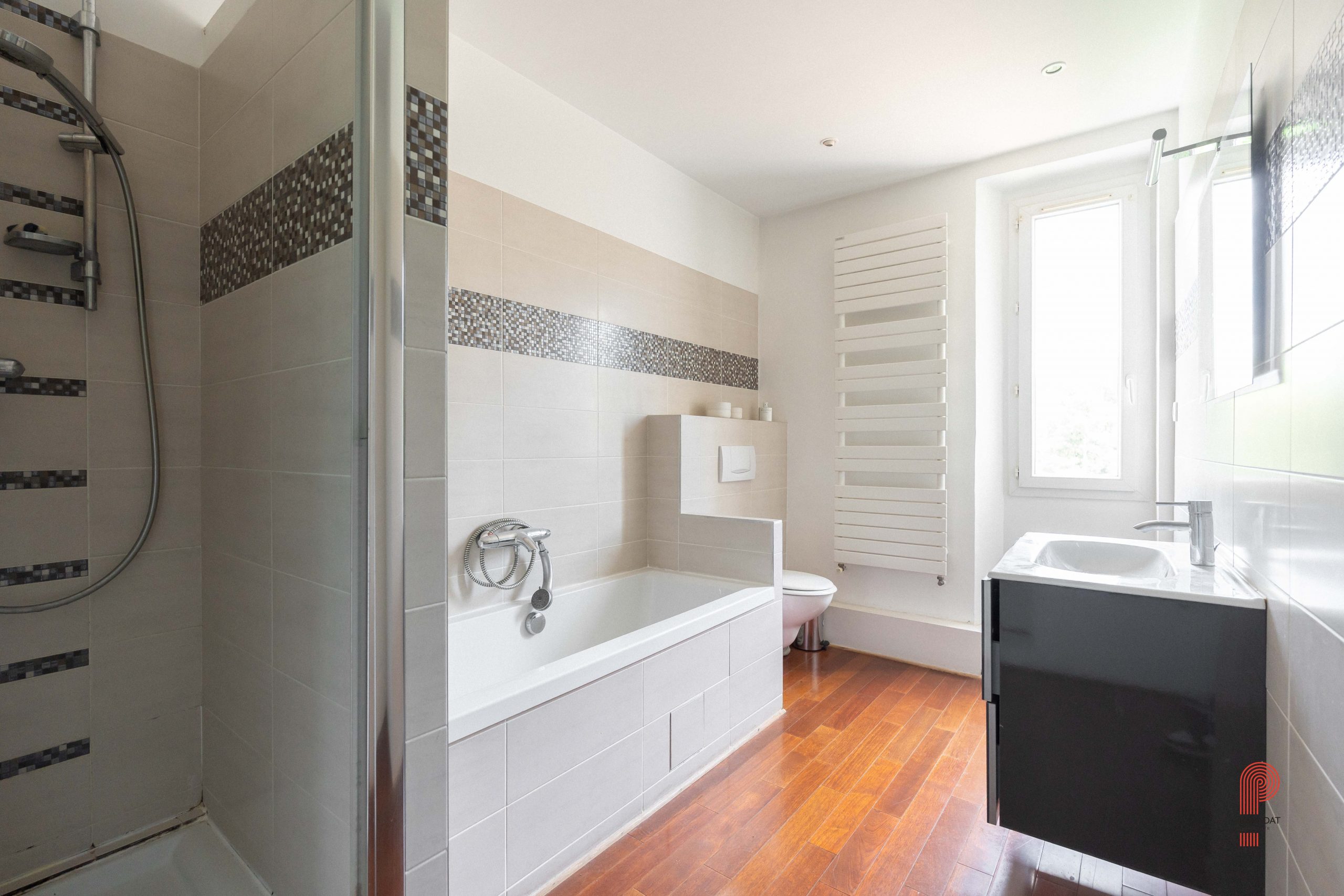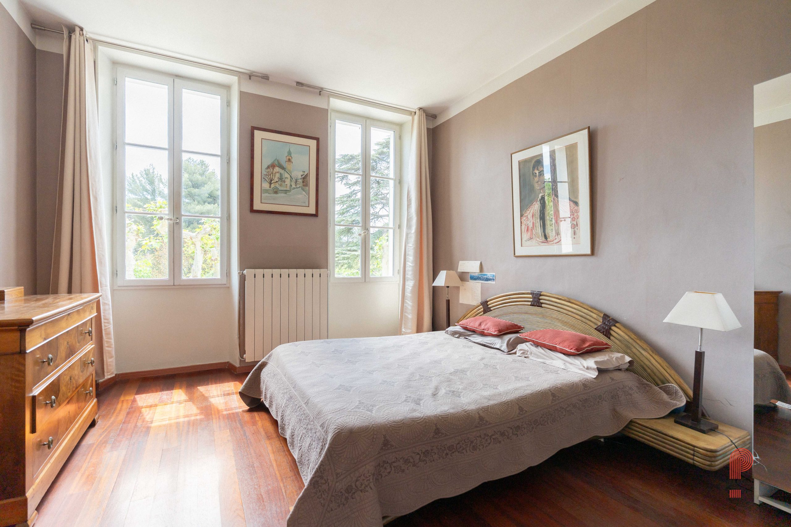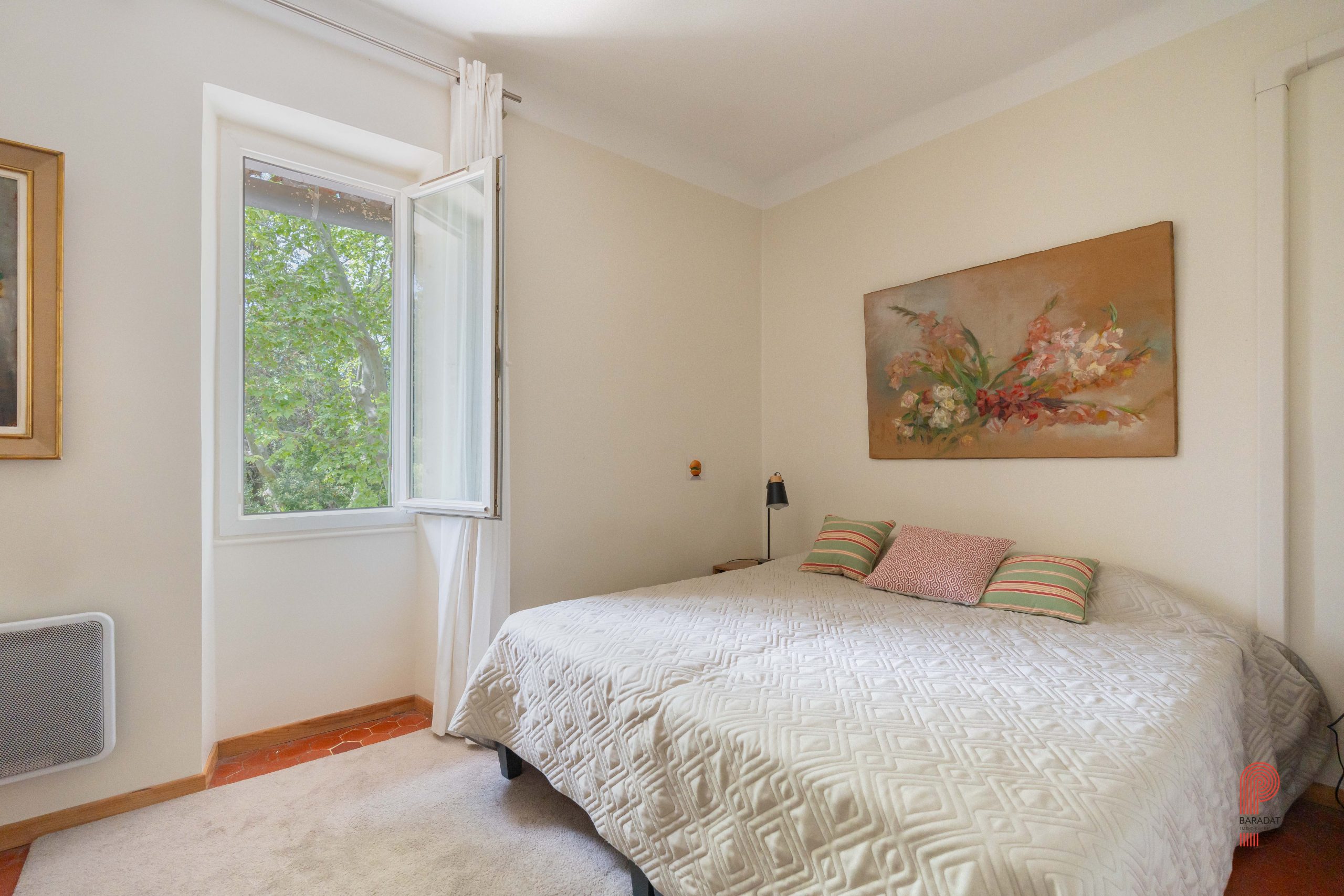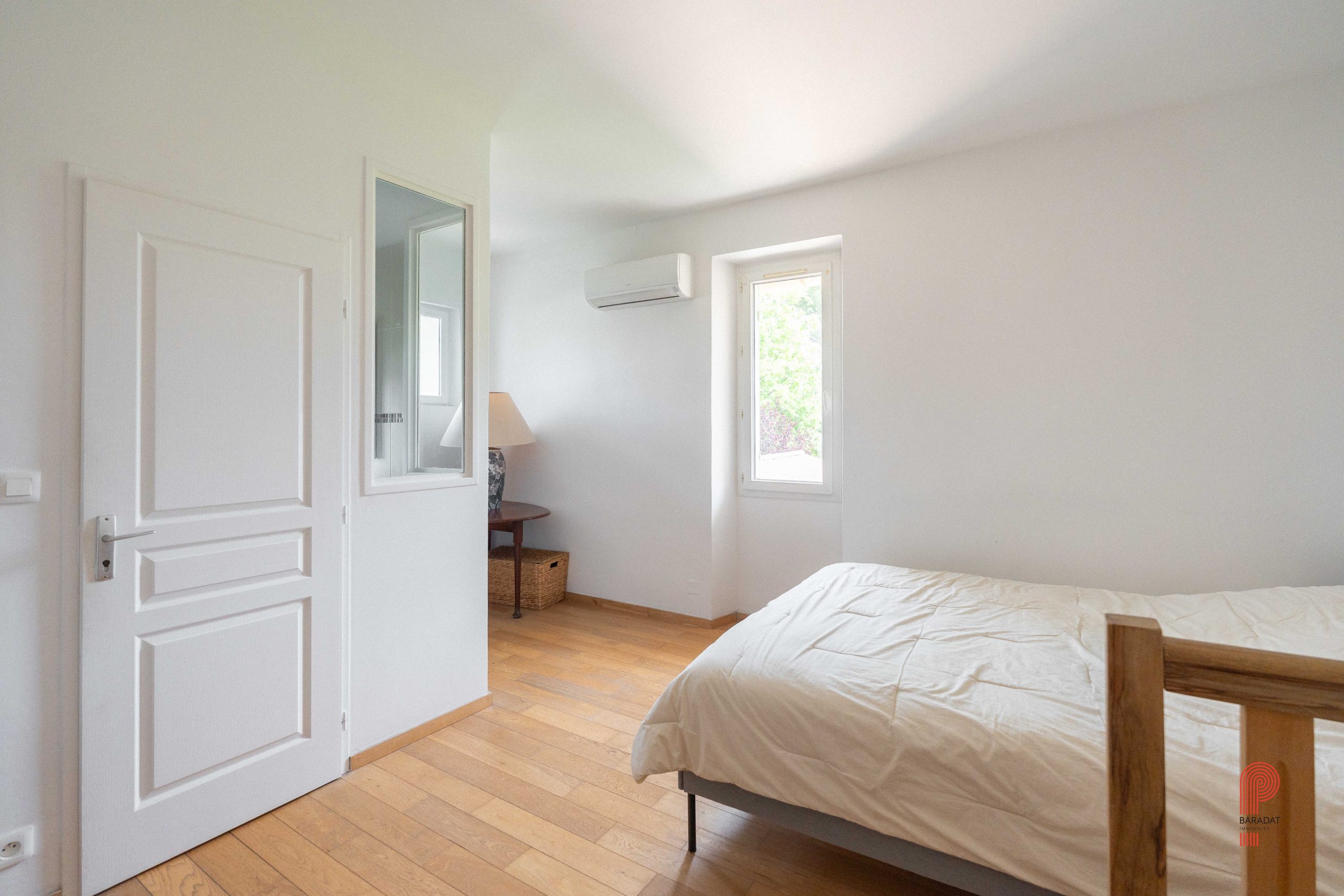 Implantée sur un terrain paysager de 1 700 m², sans aucun vis-à-vis et bordée par une zone verte inconstructible, la demeure principale offre environ 250 m² habitables. Elle comprend cinq chambres ainsi qu’un vaste bureau de 32 m². La pièce de vie, d’une superficie de 62 m², a conservé ses moulures, sa belle hauteur sous plafond et une élégante cheminée à foyer ouvert. Orientée plein sud, elle bénéficie d’une luminosité généreuse tout au long de la journée, de volumes spacieux et d’une extension plus récente qui crée un contraste harmonieux avec la bâtisse d’origine.