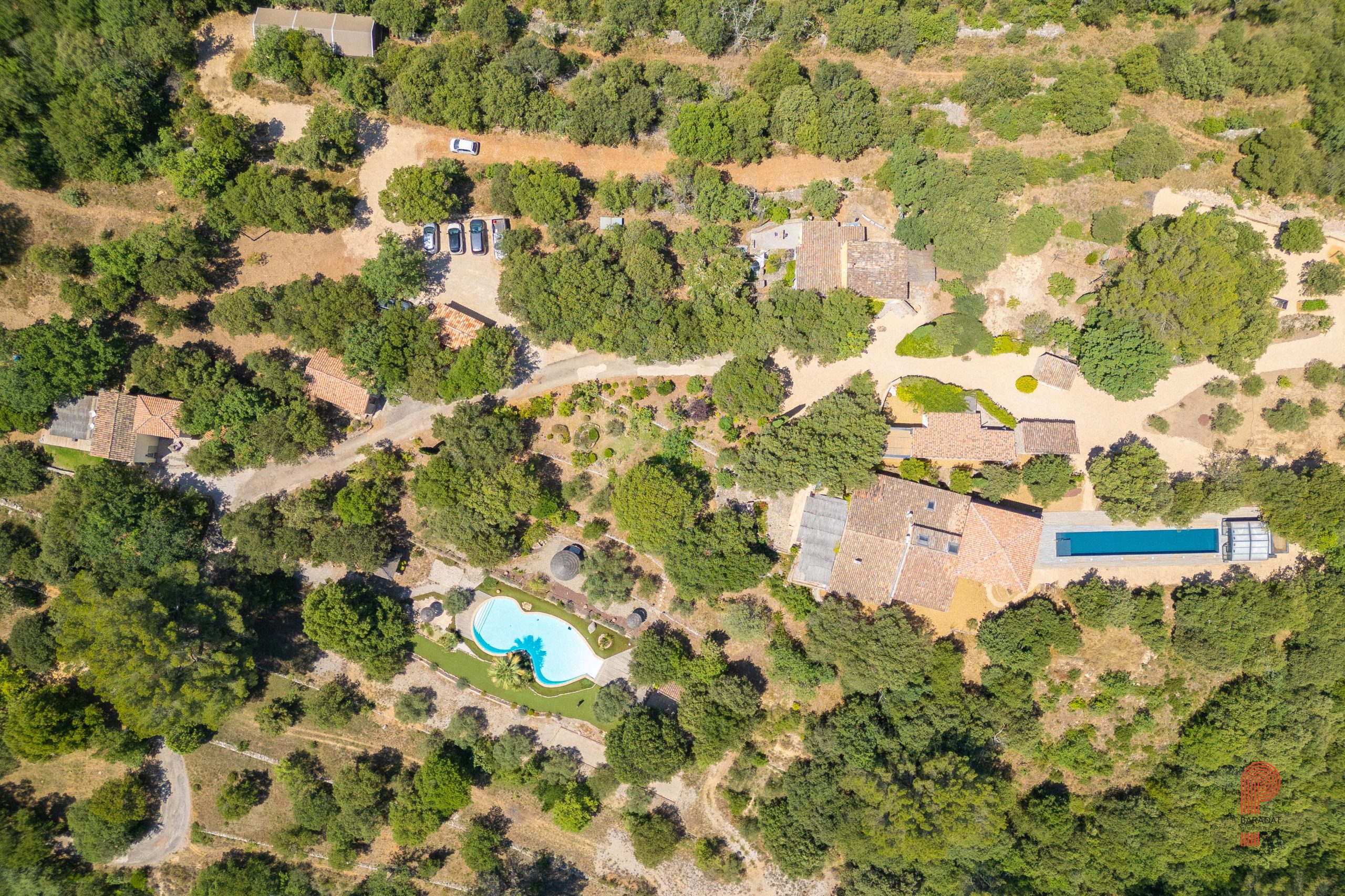 In the heart of Provence Verte, this private estate is set in a commanding position on a wooded hillside of approximately 10 hectares. It comprises 5 houses of various sizes, several outbuildings, garages, and 3 swimming pools.